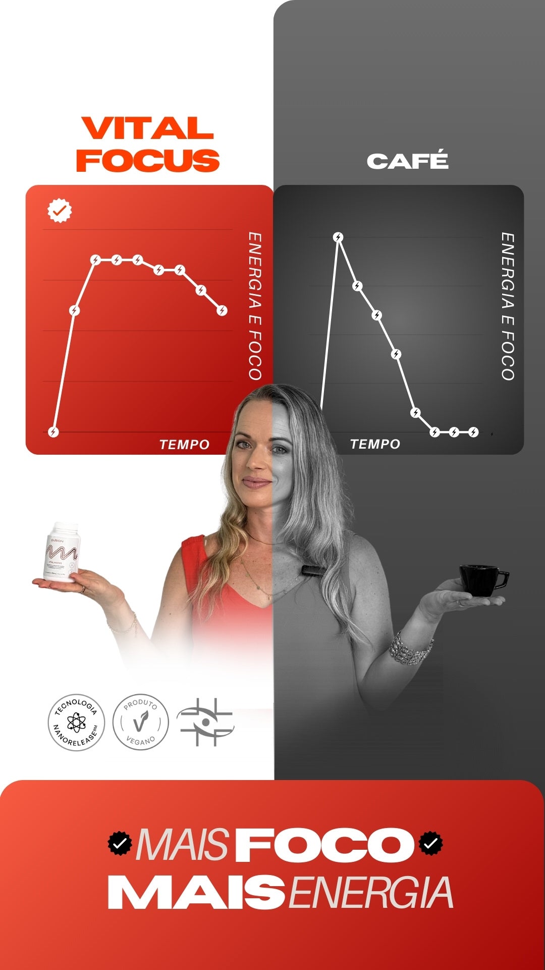 Vital Focus é a essência da vitalidade solar em um suplemento. Combinando a inovadora tecnologia NanoReleaseᴮᴹ com um blend de nutrientes como cafeína micronizada, taurina, fosfatidilserina e vitaminas B, ele oferece energia sustentada, foco aprimorado e clareza mental. Ideal para quem busca não apenas viver, mas prosperar com vigor e atenção plena.